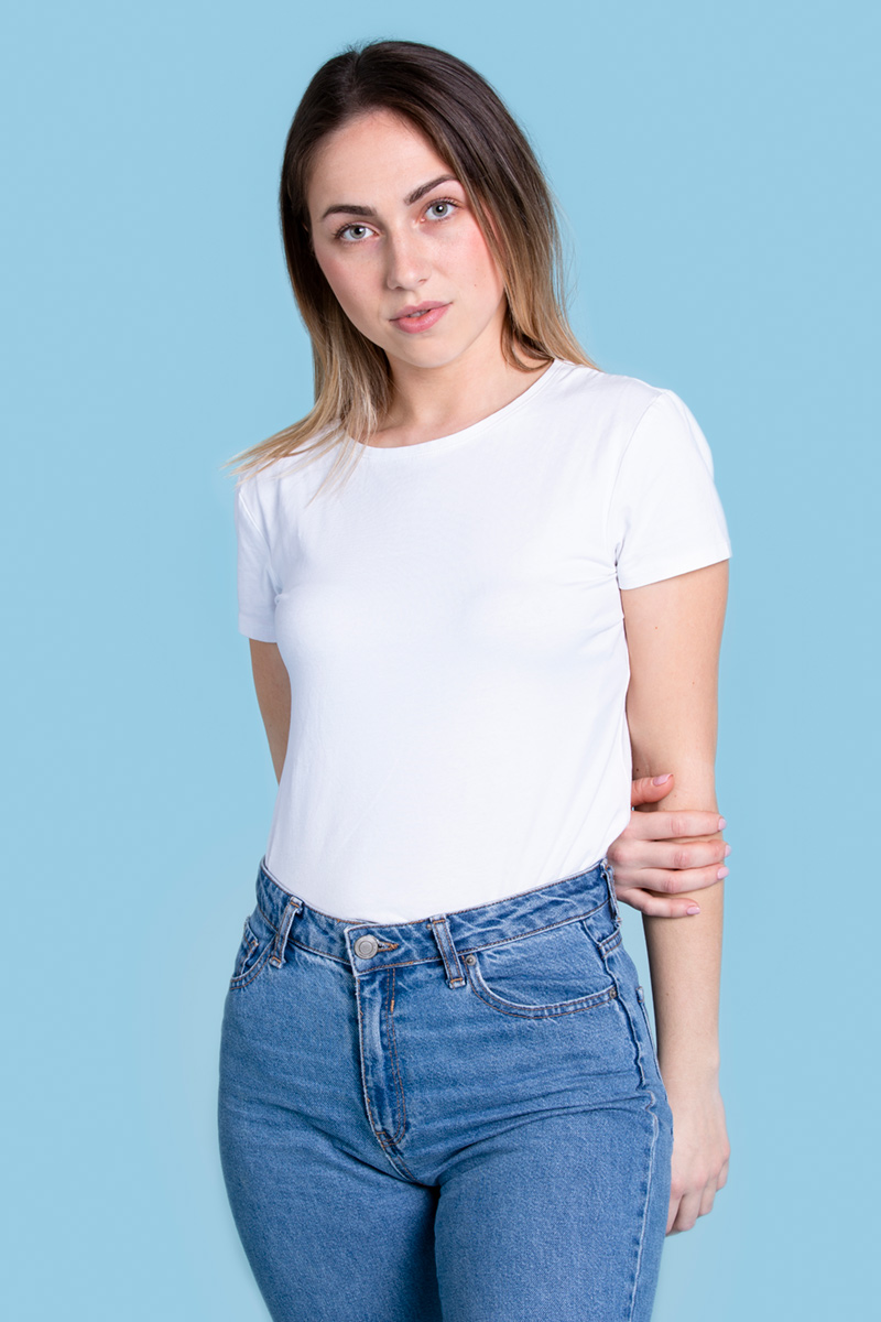 Una camiseta blanca es un básico diario. Es perfecta para usar sola o en capas. Combínala con jeans, faldas o pantalones cortos para un look sencillo pero chic.