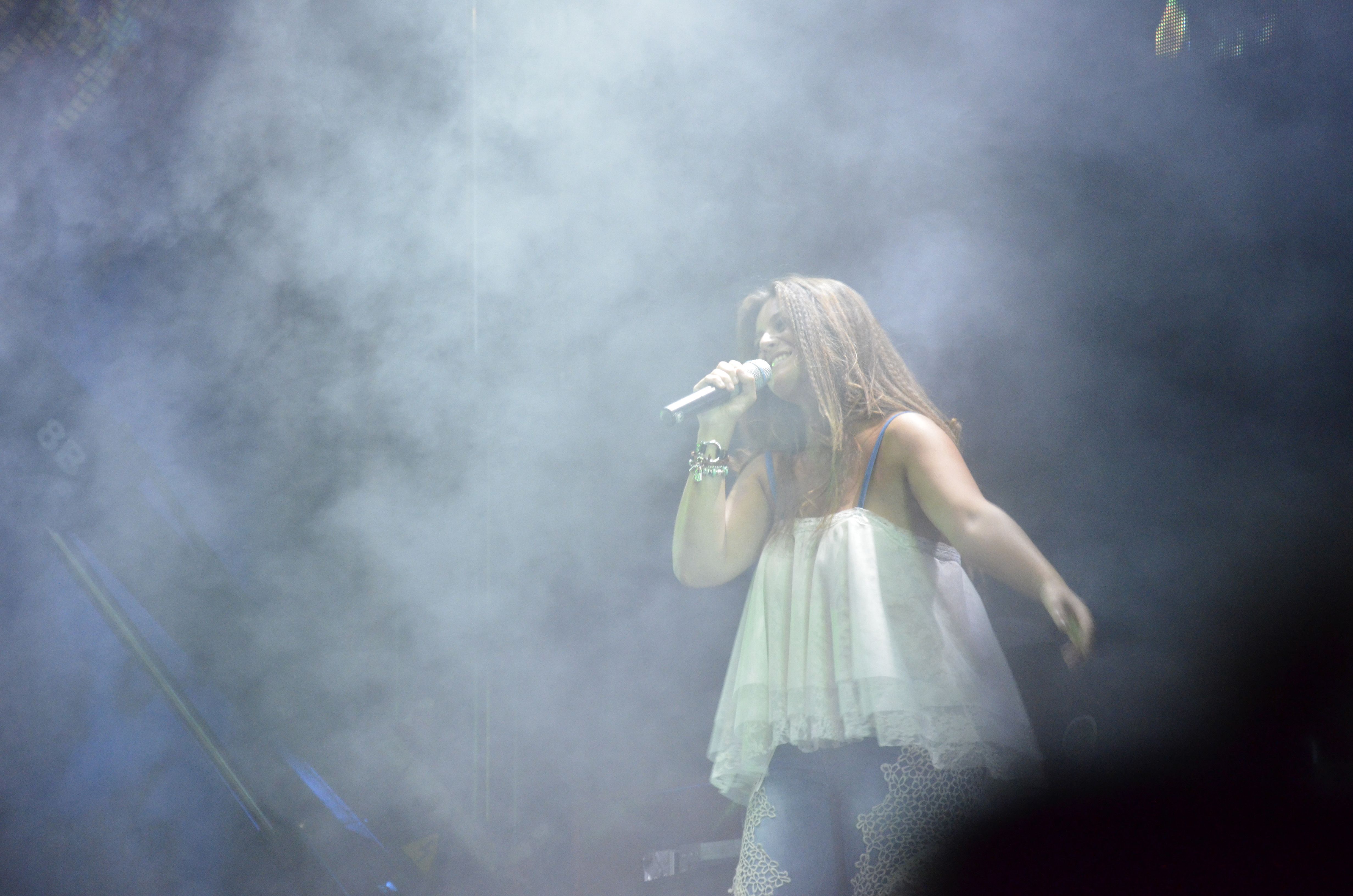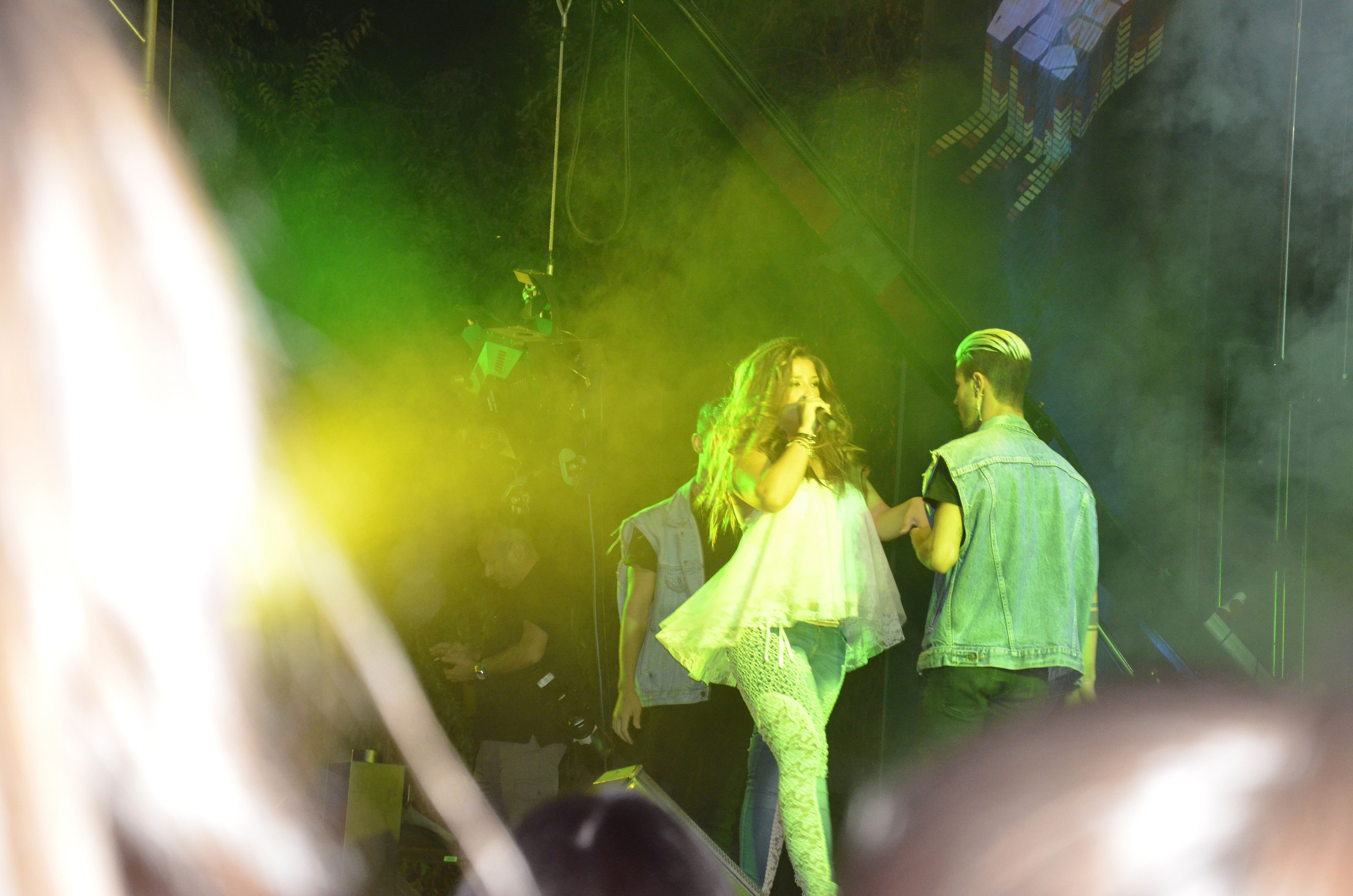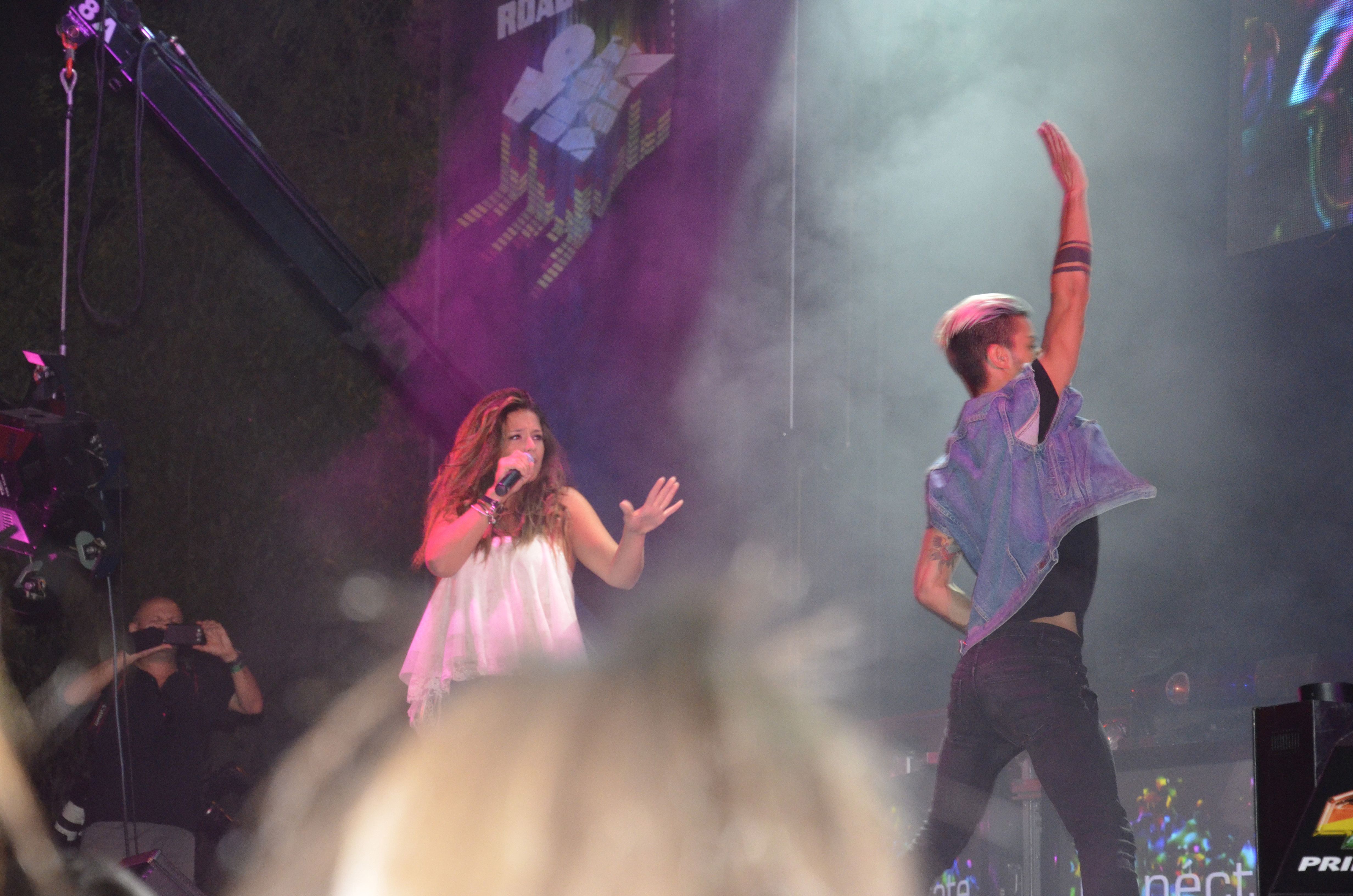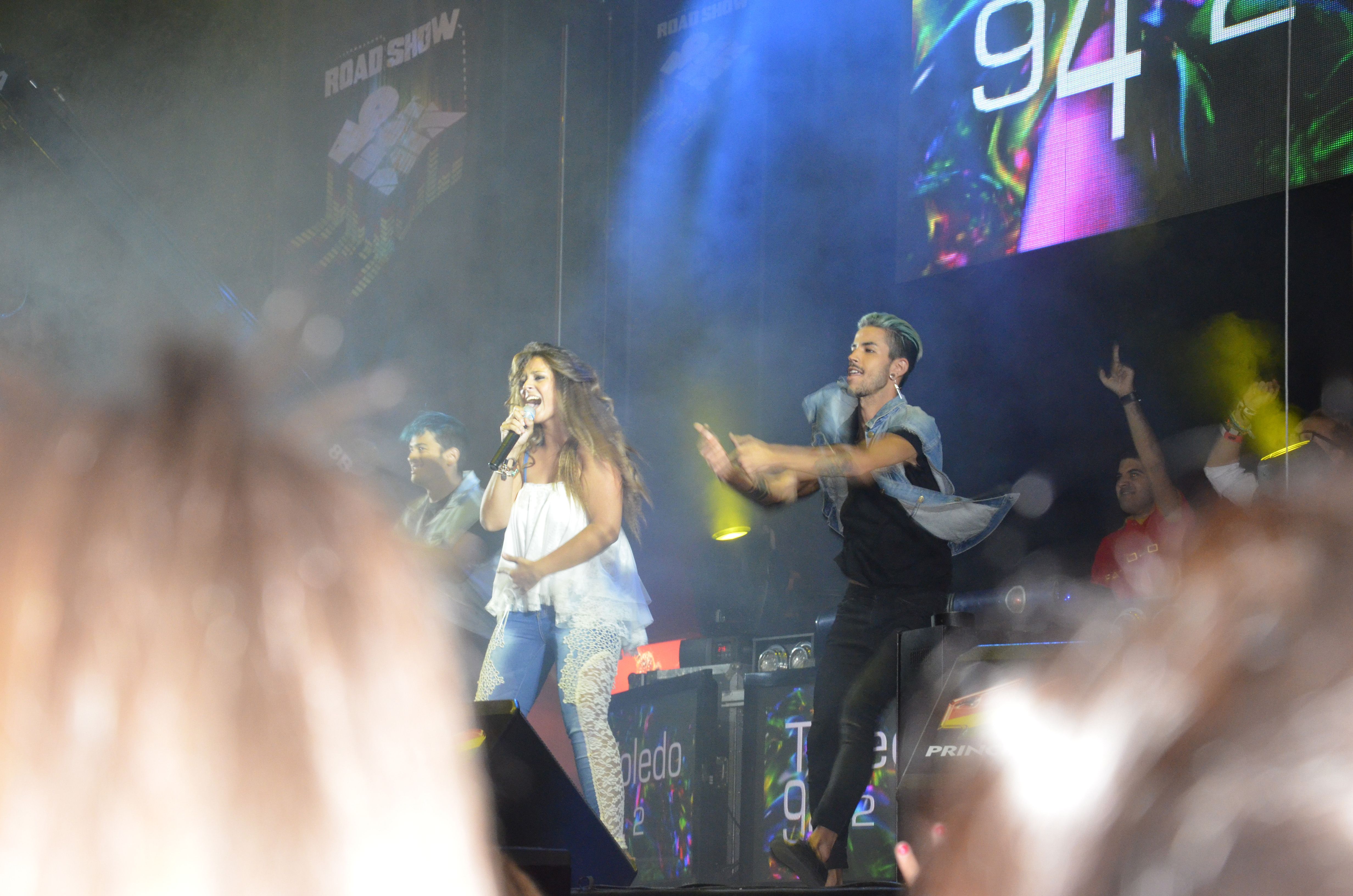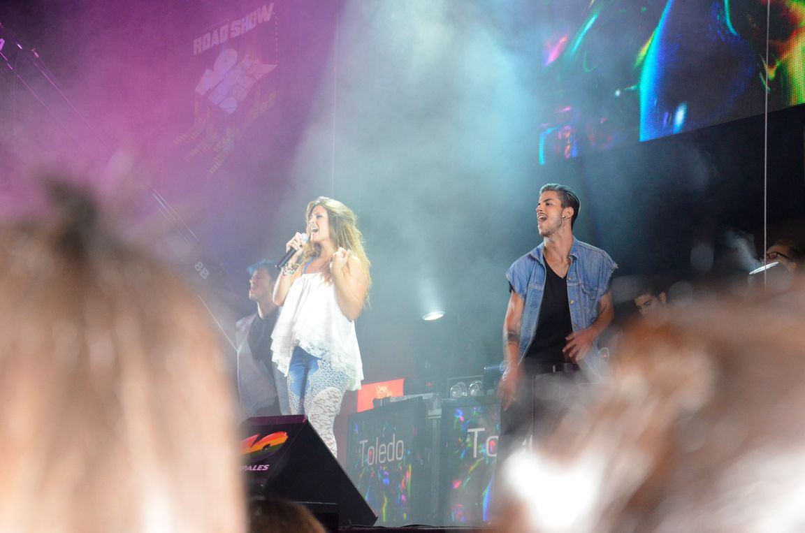 A las 22.30 los locutores de 40 Principales Toledo, Edu Naranjo y Óscar Martínez abrían la noche con un warm up excelente que dió paso a la actuación de nuestra gran María Aguado, la cual saltó al escenario con su tema «Nada es demasiado» acompañada por sus bailarines en todo momento y más tarde por Mickey Dastinz, rapero que la acompaña en su último éxito «Amor de verano», actuación que despertó la locura entre los miles de asistentes seguidores del dance nacional.