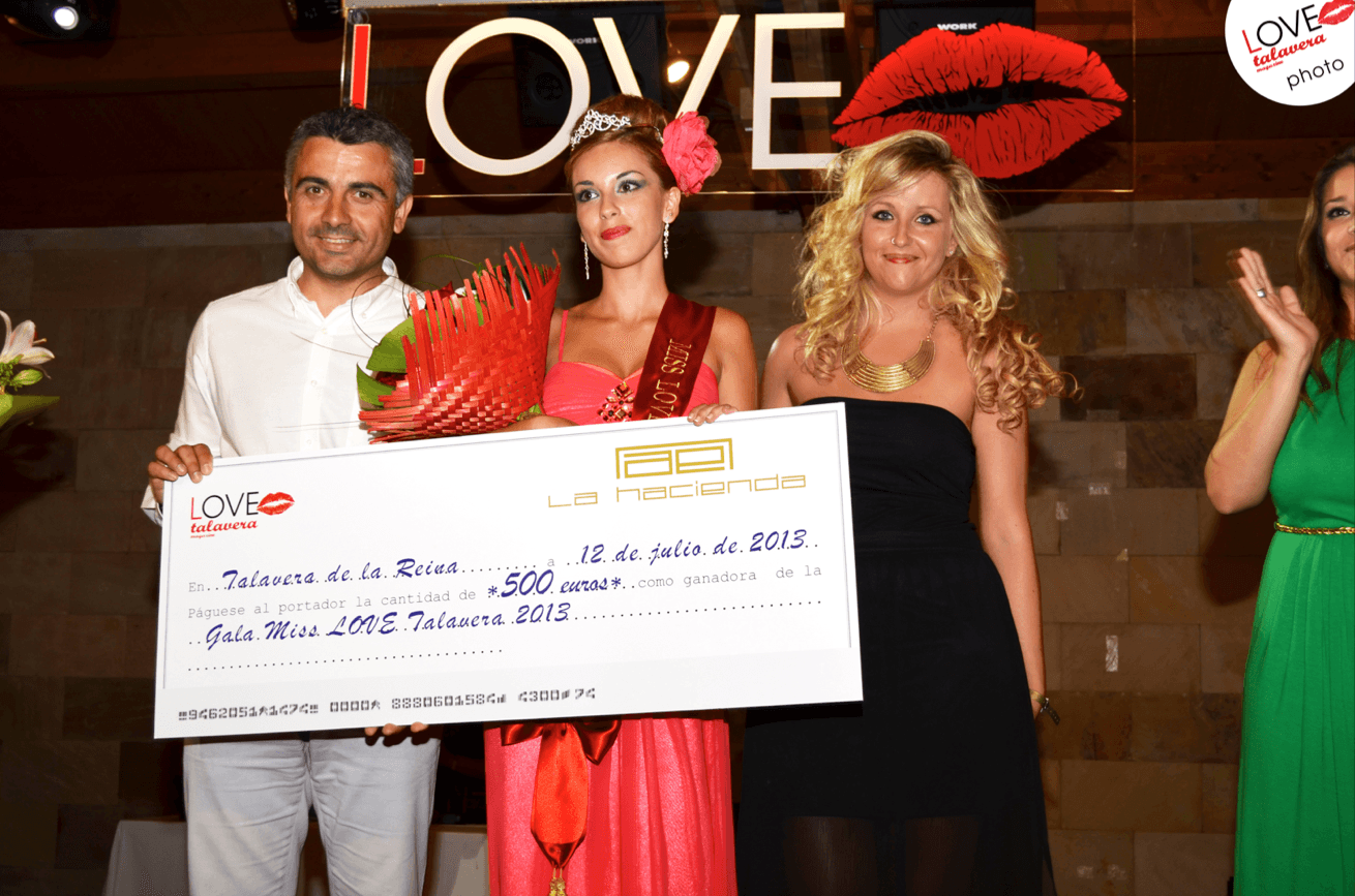 El pasado viernes 12 de julio a las 22.00h tuvo lugar la I GALA ELECCIÓN MISS LOVE TALAVERA con entrada gratuita en las instalaciones de Complejo la Hacienda. Para ello la dirección de la revista mensual de carácter gratuito con mayor difusión en Talavera de la Reina y su comarca “LOVE Talavera” seleccionó un total de 15 candidatas procedentes de un casting al que se inscribieron 67 jóvenes. Este Certamen organizado por Buen Arte Visual S.L.U logró su pretensión; seleccionar una ganadora que será durante los próximos 12 meses, la imagen de su producto “LOVE Talavera”.