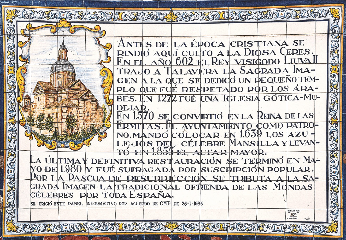 La Basílica del Prado es una de las iglesias más interesantes y representativas de Talavera. Según la tradición en este lugar hubo un templo romano dedicado a la diosa Ceres a la que en primavera se la ofrecían los primeros frutos de la tierra, este culto se cristianizó en siglos posteriores y el templo se dedicó a la Virgen María, según se cuenta fue el propio rey visigodo Liuva II quien en el año 602 entregó la imagen de la Virgen y desde entonces las ofrendas primaverales fueron dedicadas a ella naciendo de este modo la fiesta de las Mondas.