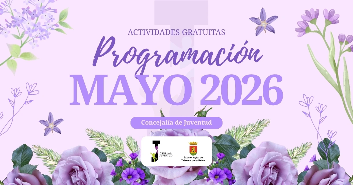 La Concejalía de Juventud ha presentado la programación de actividades juveniles prevista para el mes de mayo en Talavera de la Reina, con propuestas dirigidas a jóvenes de 14 a 35 años. La mayoría de iniciativas se desarrollarán en la Casa de la Juventud (Plaza del Pan, 6), con opciones que van desde talleres creativos y formativos hasta una excursión de ocio fuera de la ciudad.