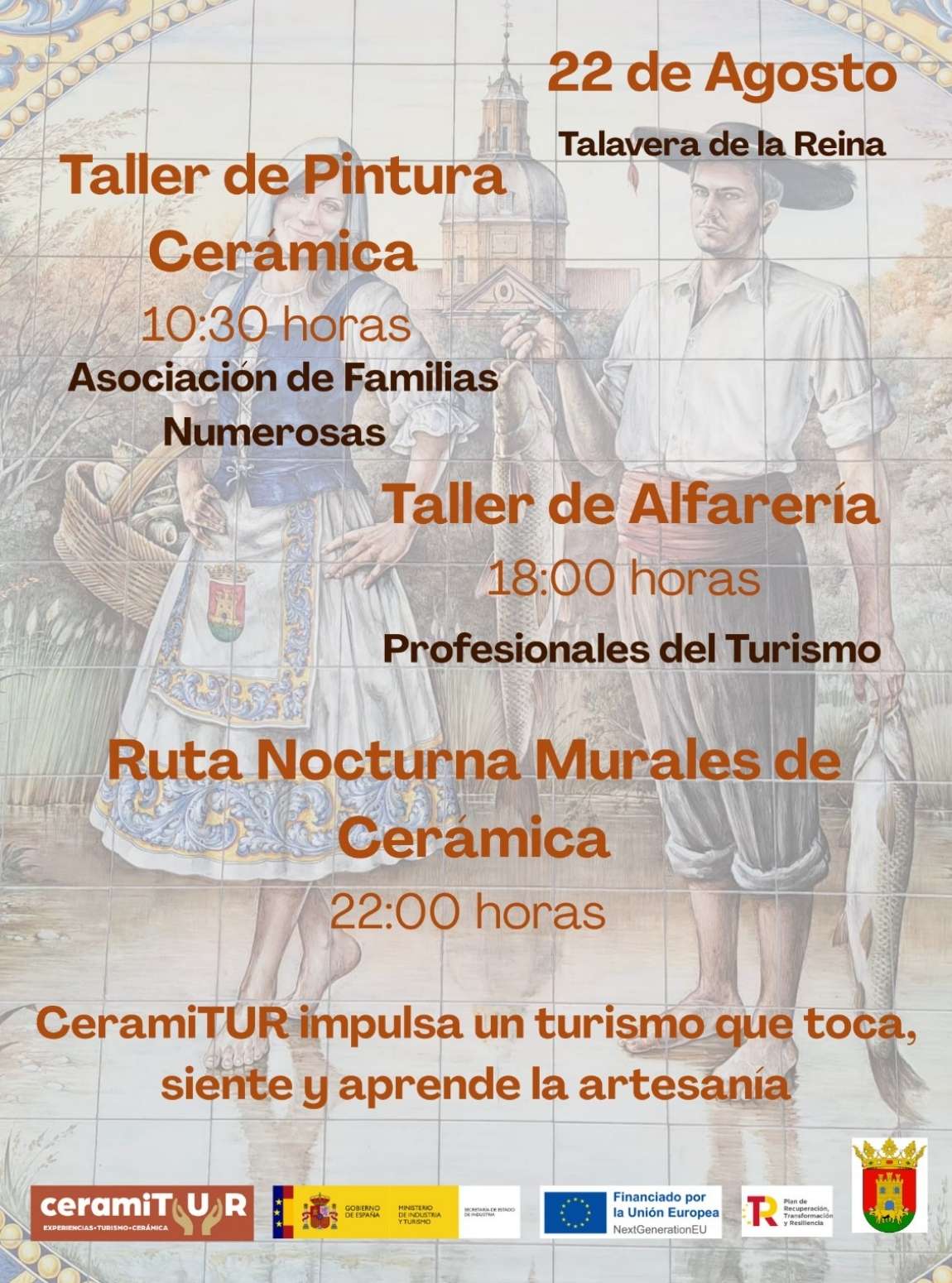 Talavera de la Reina vivirá este viernes 22 de agosto una jornada única en torno a su seña de identidad más reconocida: la cerámica. El proyecto CeramiTUR, impulsado por la Asociación Española de Ciudades de la Cerámica y coordinado en la ciudad por la Concejalía de Turismo y Artesanía, ha diseñado un programa de talleres y actividades pensadas para distintos públicos, con el objetivo de acercar este arte ancestral a la ciudadanía y a los profesionales del sector turístico.