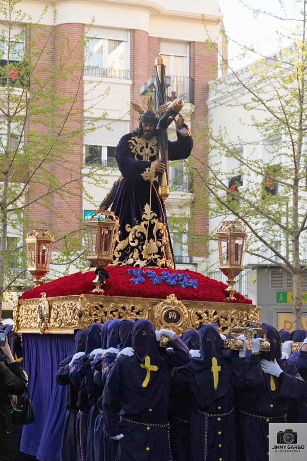 El regreso por la calle Mesones dejó algunas de las estampas más seguidas por el público, con un tránsito en el que se combinaron arte y sobriedad. La Agrupación Musical de la propia Hermandad mantuvo un acompañamiento continuo, enlazando marchas a lo largo de buena parte del trayecto. Con ese respaldo musical, el Nazareno y la Verónica avanzaron con una cadencia que fue valorada por los asistentes por su elegancia y armonía.